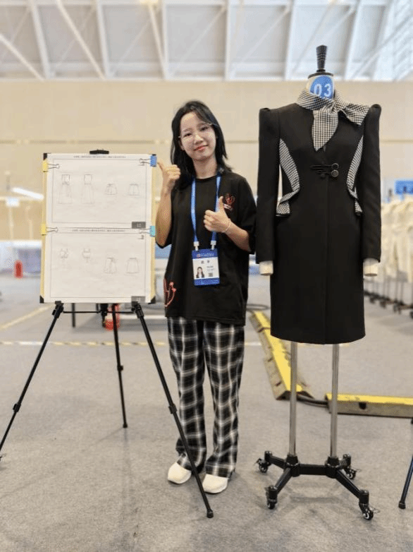 “时装技术”(世赛)项目共分为款式设计、立体裁剪、半身裙制版、成衣制作四大模块,比赛过程中考验选手服装设计、立体造型、平面制版、样衣制作等综合实力,既要技术精、速度快,又要质量高。