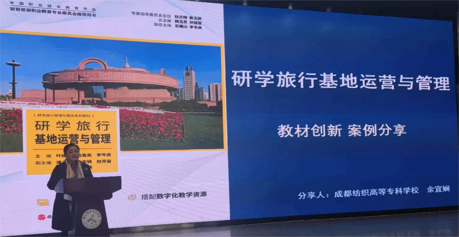 叶娅丽教授主编的《研学旅行基地运营与管理》教材由旅游教育出版社于2023年7月正式出版,是叶教授潜心钻研职业教育教材多年编写出版的最新教材,教材以立德树人、培养新时代研学人才为根本目的,融入课程思政理念,以产教融合、校企合作为支撑,突出打造“岗、课、赛、证”融通,打造新形态融媒体教材。该教材成为本次评选活动中,西部职业院校唯一一本入选教材创新案例的教材。