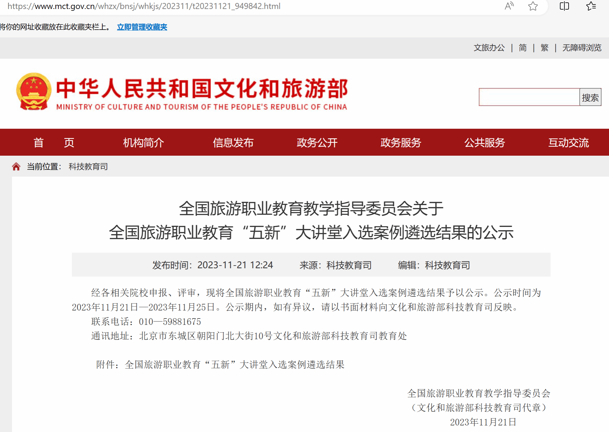 (公示链接:https://www.mct.gov.cn/whzx/bnsj/whkjs/202311/t20231121_949842.html)
